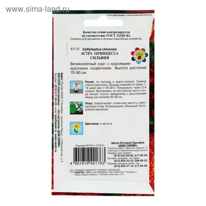Семена цветов Астра "принцесса Сильвия", 90 шт