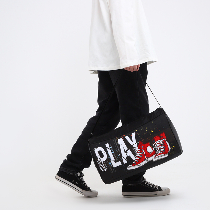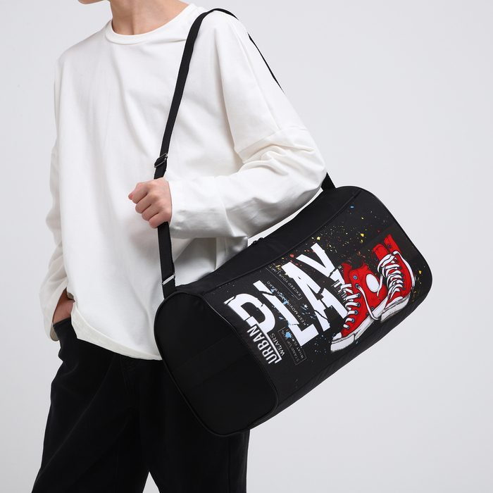 Сумка детская спортивная для мальчика на молнии, наружный карман, цвет чёрный