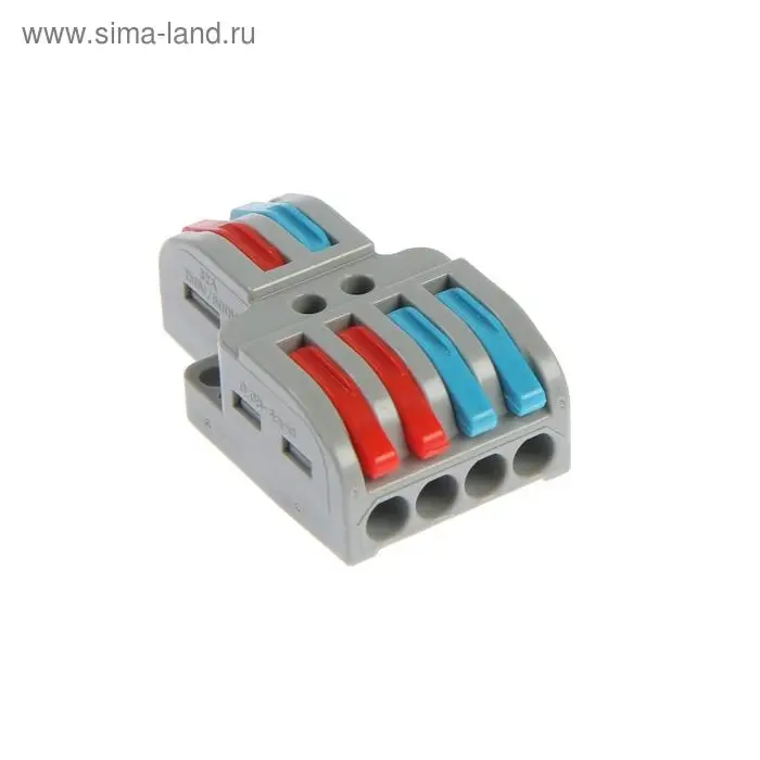 Клемма используется для подключения между собой проводов. Данные устройства позволяют произвести быстрый и безопасный монтаж токопроводящих изделий, прилагая при этом минимум усилий. Изделие содержит два разъёма ввода и четыре для вывода.