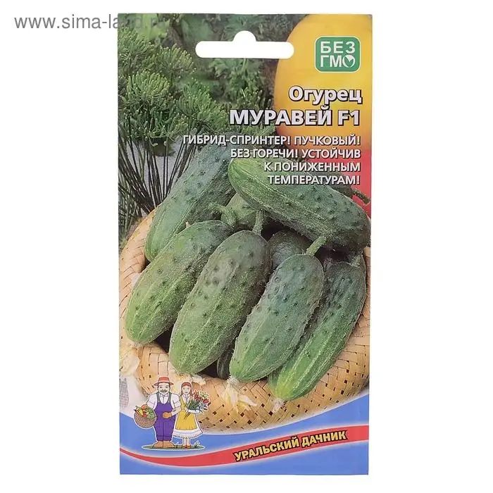 Скороспелый самоопыляющийся пучковый гибрид для выращивания в весенних теплицах, тоннелях, открытом грунте. Зеленцы корнишонного типа, крупнобугорчатые, белошипые, длиной 8-11 см, сочные, сладкие, хрустящие, без горечи. Вкусовые, консервные и засолочные качества зеленцов высокие. Гибрид устойчив к болезням и пониженным температурам.