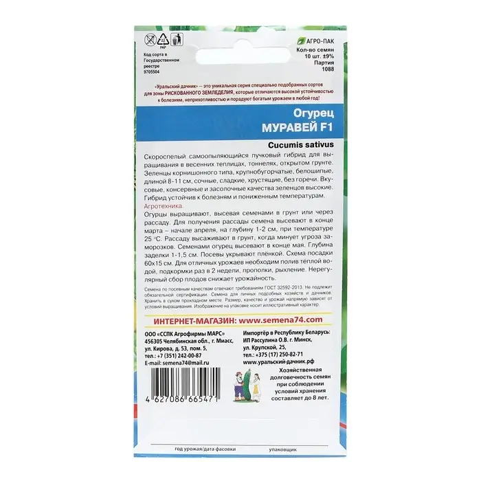 Семена Огурец "Лилипут", F1, пикуль, серия 1+1, 20 шт