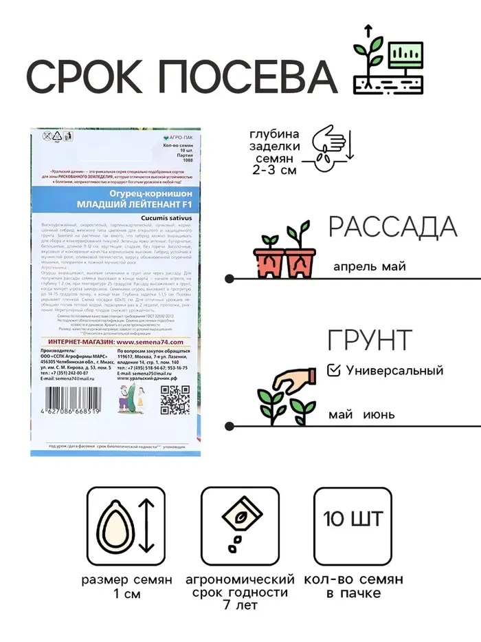 Семена Огурец Младший лейтенант F1 корнишон 10 шт.