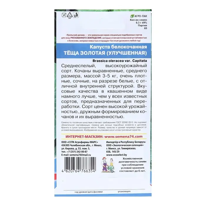 Семена Капусты белокочанной "Теща золотая", 0,3 г