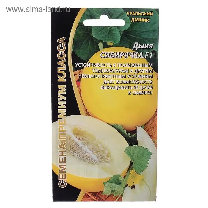Ультраскороспелый гибрид. Плод шаровидный, гладкий, оранжевый, весом до 1,5 кг. Мякоть очень ароматная, светло-кремовая, толстая, зернистая, плотная, тающая, очень сочная и сладкая, по вкусовым качествам плоды ничем не уступают южным дыням. Гибрид устойчив к пониженным температурам и другим неблагоприятным условиям. Ценится за высокую урожайность и устойчивость к болезням. Благодаря повышенному содержанию сахаров, из нее получаются изумительные восточные лакомства, цукаты, оригинальные маринады.