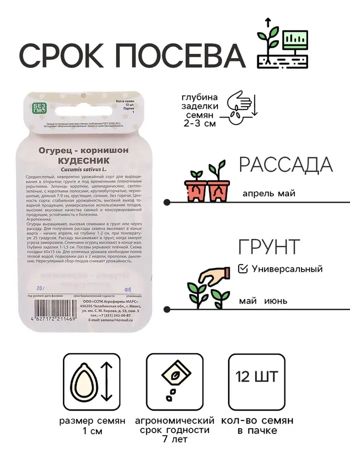 Семена Огурец "Кудесник", корнишон, серия Банка, 12 шт