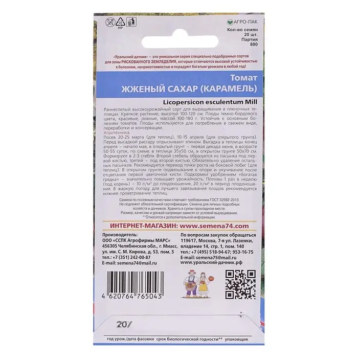 Семена Томат "Жженый сахар", индетерминантный,высокорослый, 20 шт