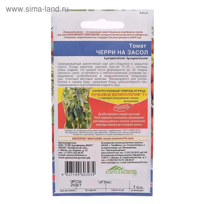 Сверхурожайный раннеспелый сорт для открытого и закрытого грунта. Плоды округлые, красные, массой 15-20 г, плотные, очень сладкие. На каждой кисти формируется до 30 плодов.