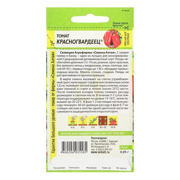 Семена Томат "Красногвардеец",детерминантный, 0,05 г