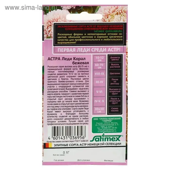 Семена цветов Астра "Леди Корал бежевая", ц/п, однолетняя, серия Эксклюзив, 0,05 г
