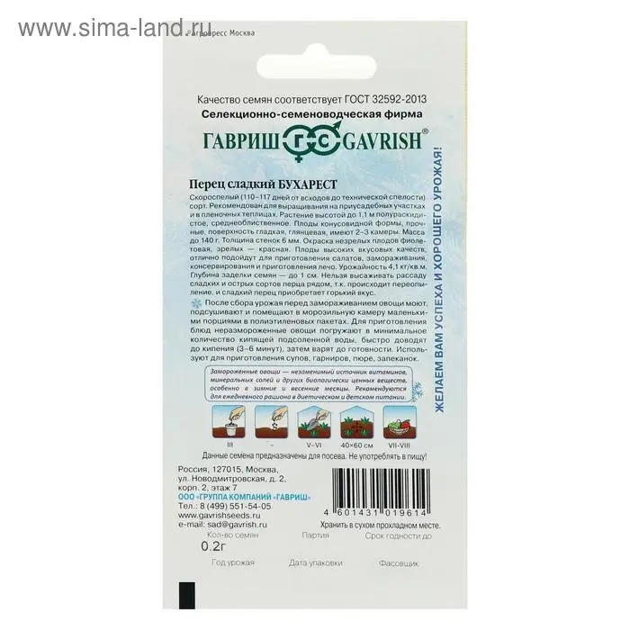 Семена Перец сладкий "Бухарест", серия Заморозь, 0,1 г