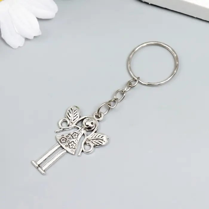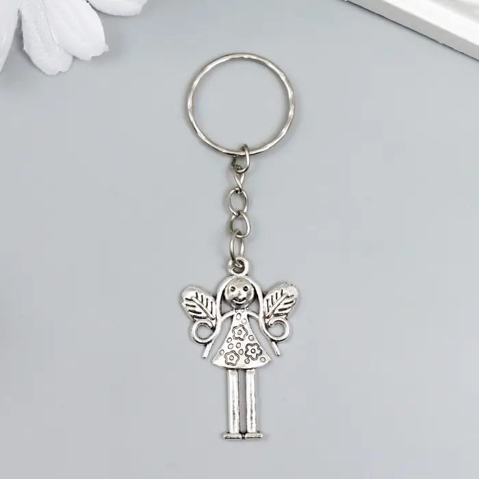Брелок металл "Девочка-фея" серебро 3х2,7 см