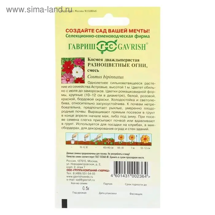 Семена цветов Космея "Разноцветные огни", ц/п, 0,5 г