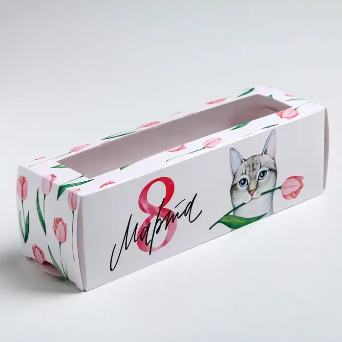 Коробка для макарун, кондитерская упаковка «8 марта», 5.5 х 18 х 5.5 см