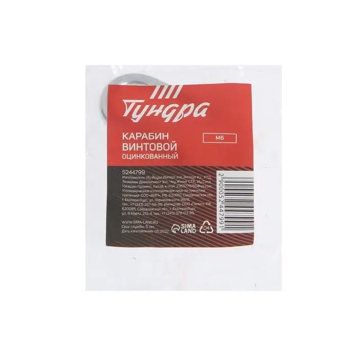 Карабин винтовой ТУНДРА krep, М6, оцинкованный, 1 шт.