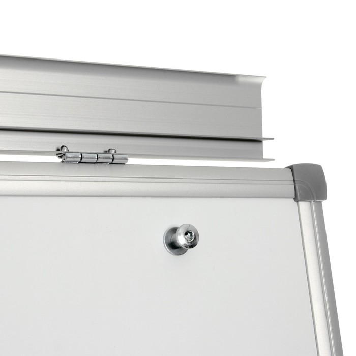 Металлическая составляющая покрытия делает доску магнитной.Алюминиевая рама обеспечивает надежность и прочность при работе с доской.Блокнот крепится при помощи неподвижных винтов.