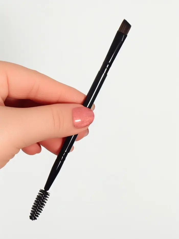 Кисть подойдёт для сухих, кремовых и гелевых текстур. Используйте её для нанесения теней, проработки бровей, прорисовки чётких линий. Щёточка справится с укладкой бровей и поможет избавиться от слипшихся ресниц.