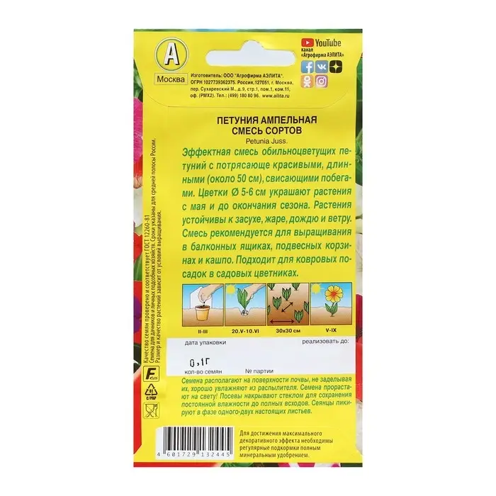 Семена цветов Петуния "Ампельная", смесь окрасок,0,1 г