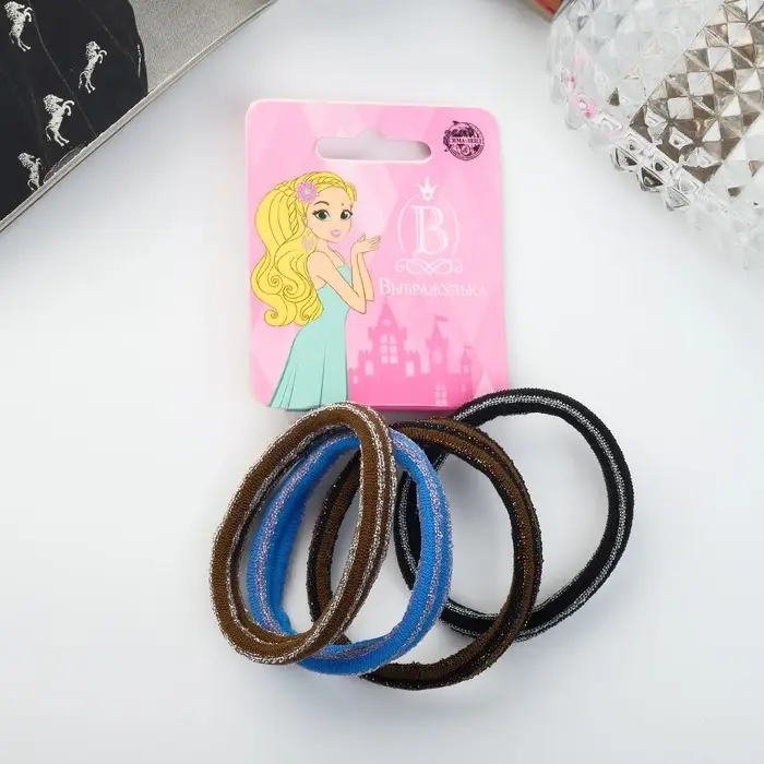 Резинка для волос "Спорт" (набор 4 шт) полоски блеск, 5 см, тёмный