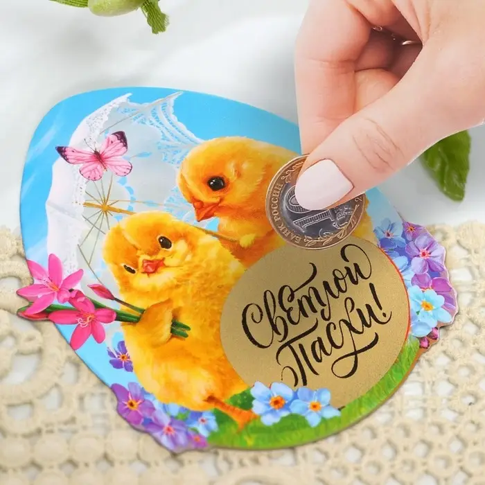 Пасха - светлый праздник. По традиции все украшают варенные яйца, пекут куличи, ходят друг к другу в гости и обмениваются подарками. В этот светлый праздник предлагаем вам порадовать своих родных и близких и сделать им красивый подарок в виде магнита. Магнит со скретч-слоем под которым таится пожелание для вашего родного человека станет очень оригинальным и интересным подарком. Чтобы увидеть пожелание нужно всего лишь вооружиться монетой и стереть скретч-слой и вот вы уже видите пожелание которое согреет сердце и душу.