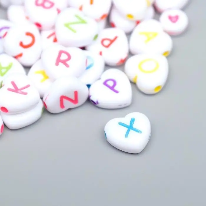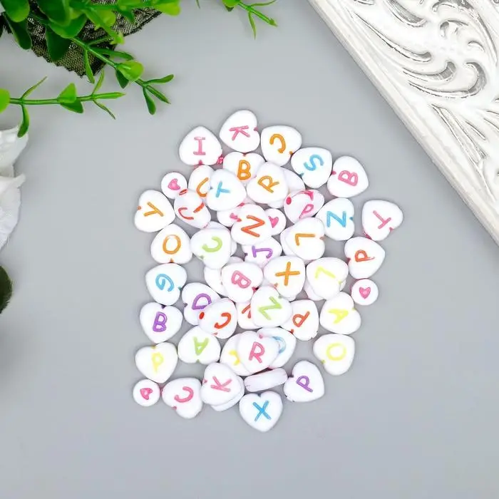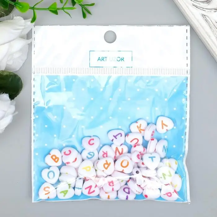 Набор бусин для рукоделия и плетения «Арт Узор. Английские буквы на сердце», 20 г, пластик, 1.2×1.2 см