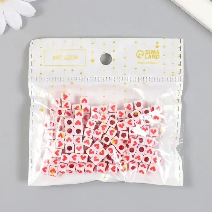 Набор бусин для рукоделия и плетения «Арт Узор. Красное сердечко в кубе», 20 г, пластик, 0.5×0.5 см