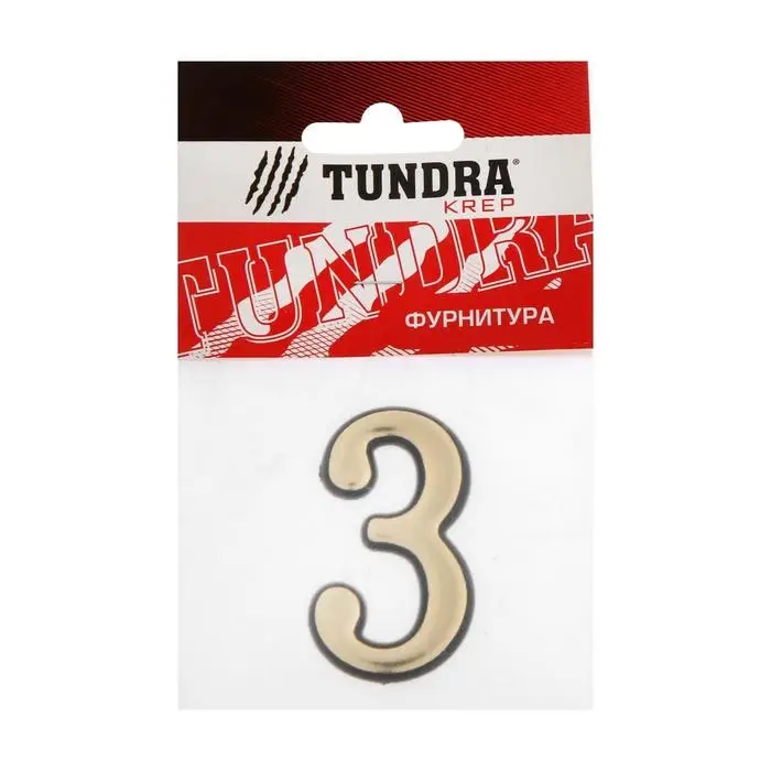 Цифра дверная 3 ТУНДРА, пластиковая, цвет золото 1 шт.