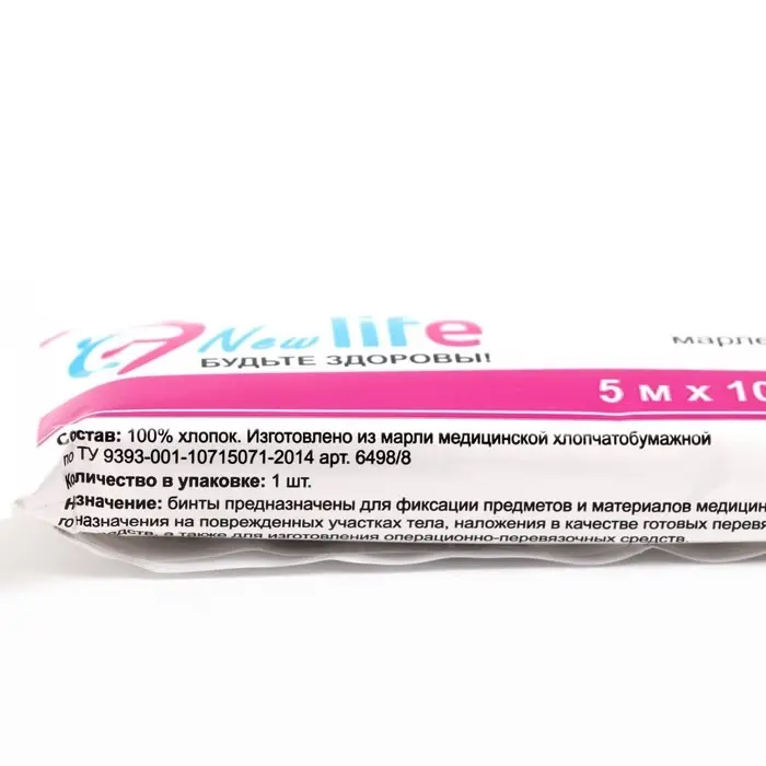 Бинт марлевый медицинский стерильный 7 м х 14см - предназначен для фиксации, наложения, изготовления операционно-перевязочных средств. Материал - медицинская отбеленная марля, соответствующая техническим требованиям «ГОСТ 9412-93. Марля медицинская. Общие технические условия». В производстве данных бинтов используется марля отбеленная медицинская по ТУ 9393-001-10715071-2014. Поверхностная плотность используемой марли - 30±2г/м².