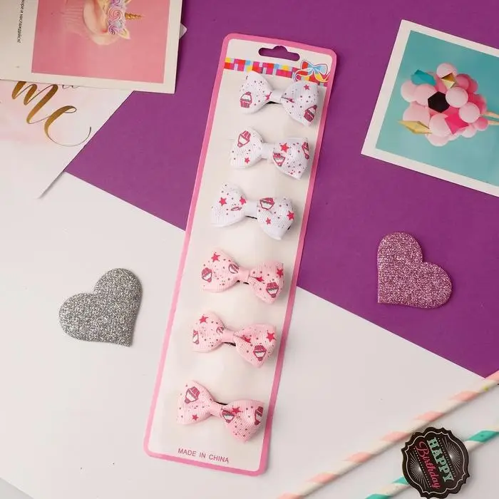Зажим для волос "Бантик" звёзды и кексы 4,5 см, белый и розовый