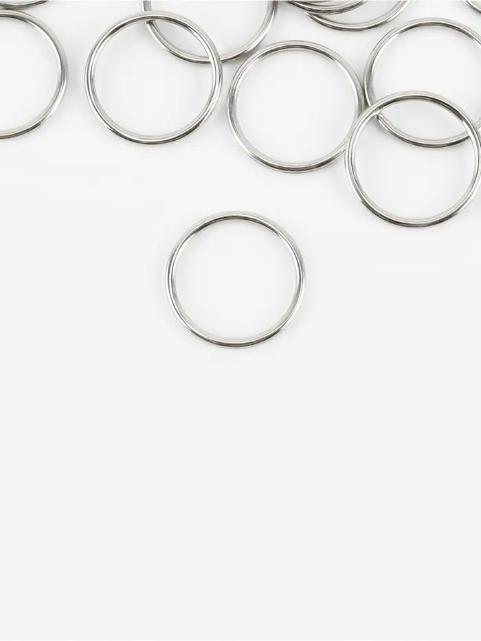 Металлические кольца для бретелей — надёжный аксессуар для регулировки длины лямок одежды. Серебристый цвет сочетается с изделиями разных оттенков, а прочность материала обеспечивает длительное использование. Такие кольца подойдут для пошива, ремонта и декорирования женской одежды, нижнего белья, купальников и сумок.