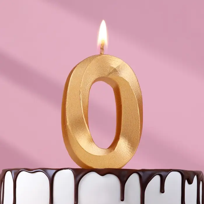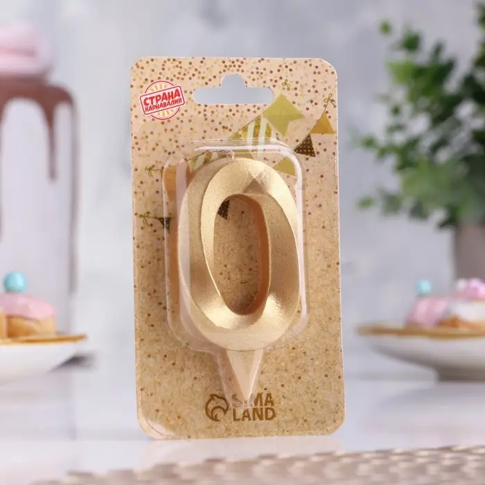 Свеча в торт «Цифра 0», золотая, 6.5 см