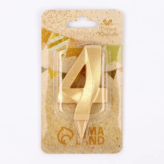 Свеча в торт «Цифра 4», золотая, 6.5 см
