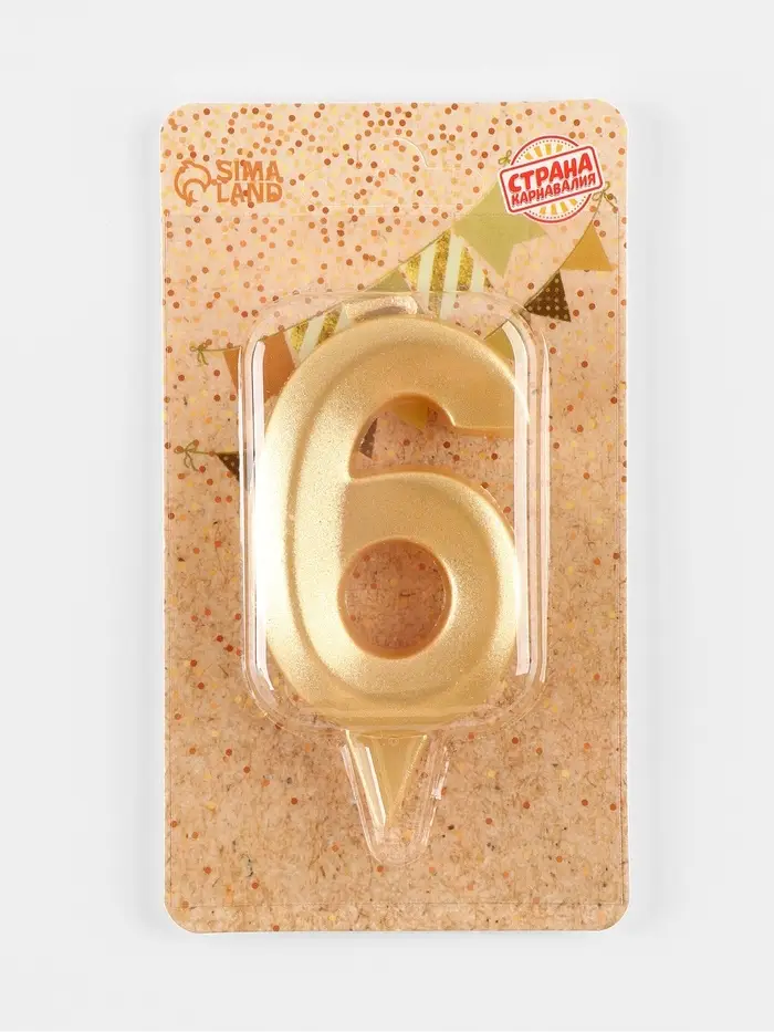 Свеча в торт «Цифра 6», золотая, 6.5 см