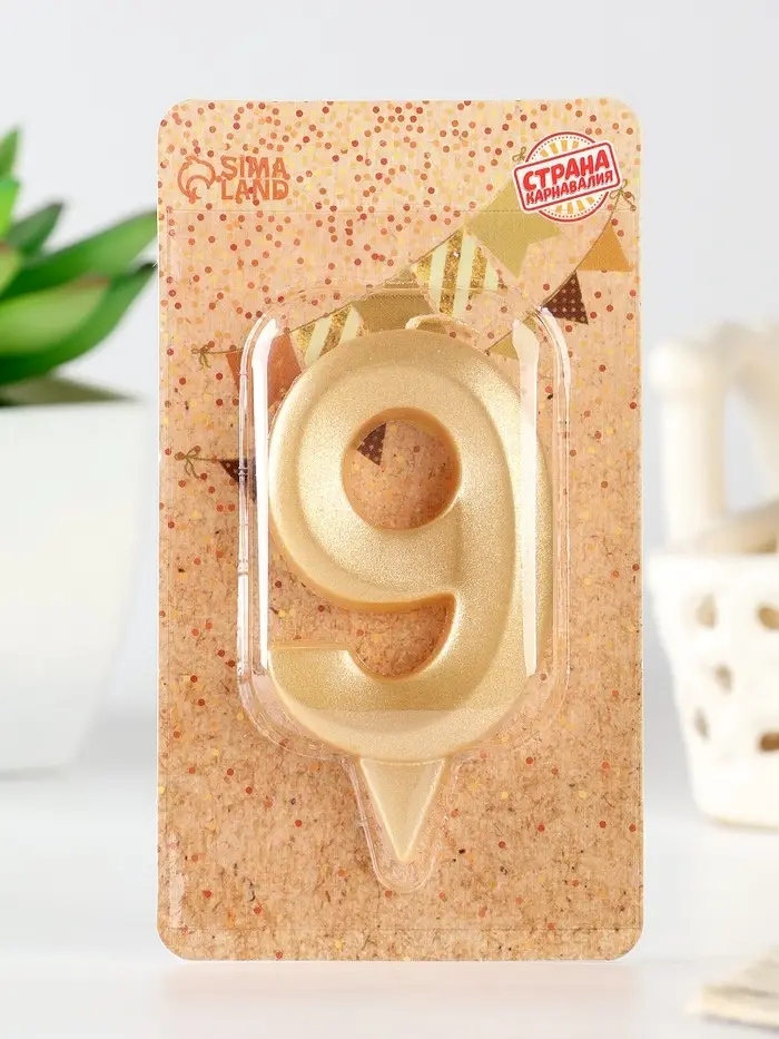 Свеча в торт «Цифра 9», золотая, 6.5 см