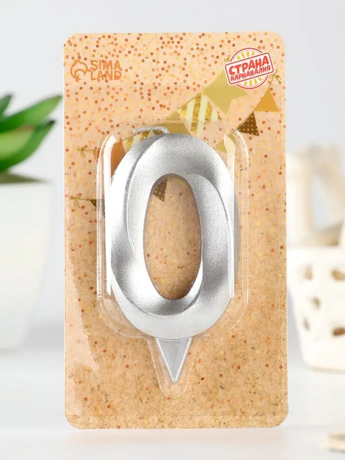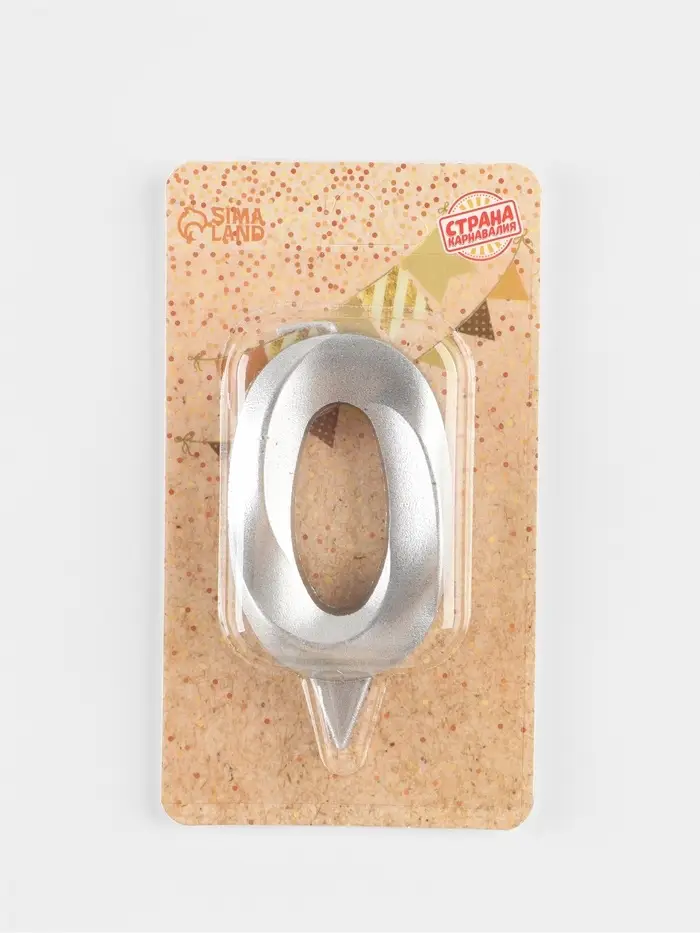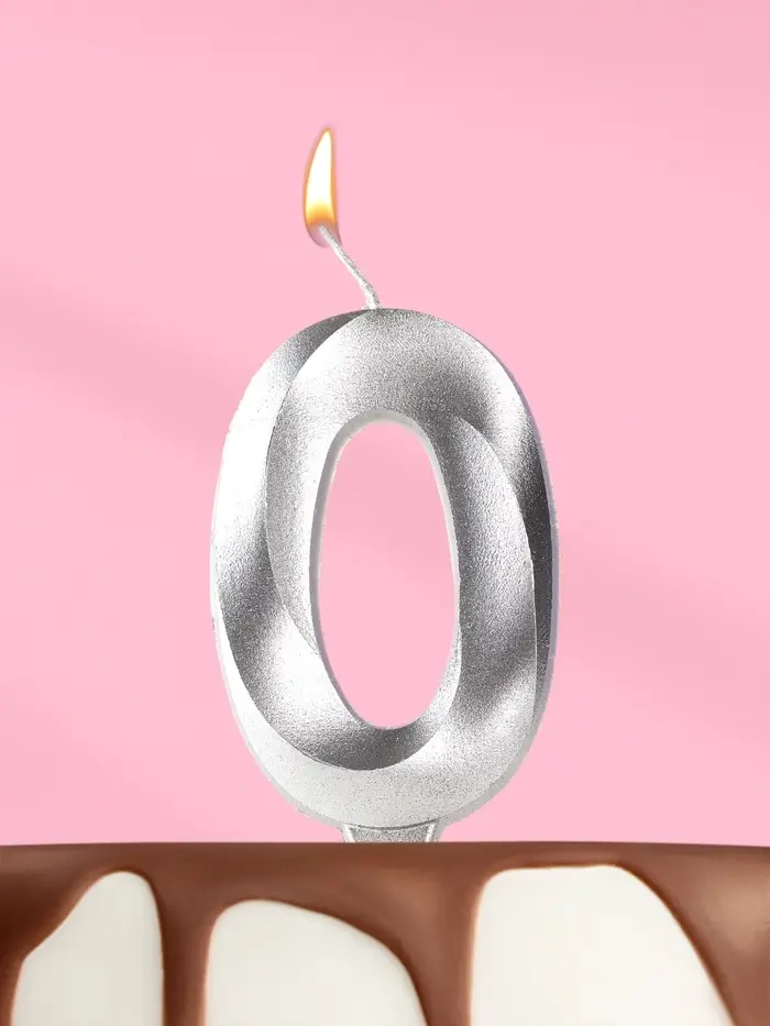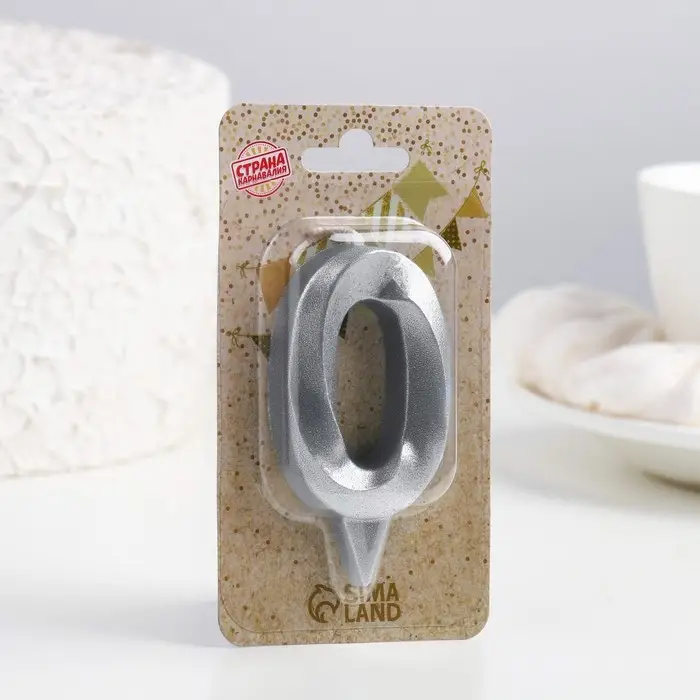 Свеча в торт «Грань», цифра 0, серебряный металлик, 6.5 см