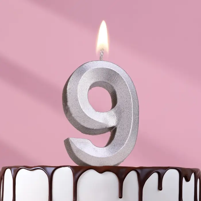 Свеча в торт «Цифра 9», серебряная, 6.5 см