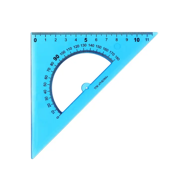Тонированный треугольник с транспортиром предназначен для чертёжных и измерительных работ.
