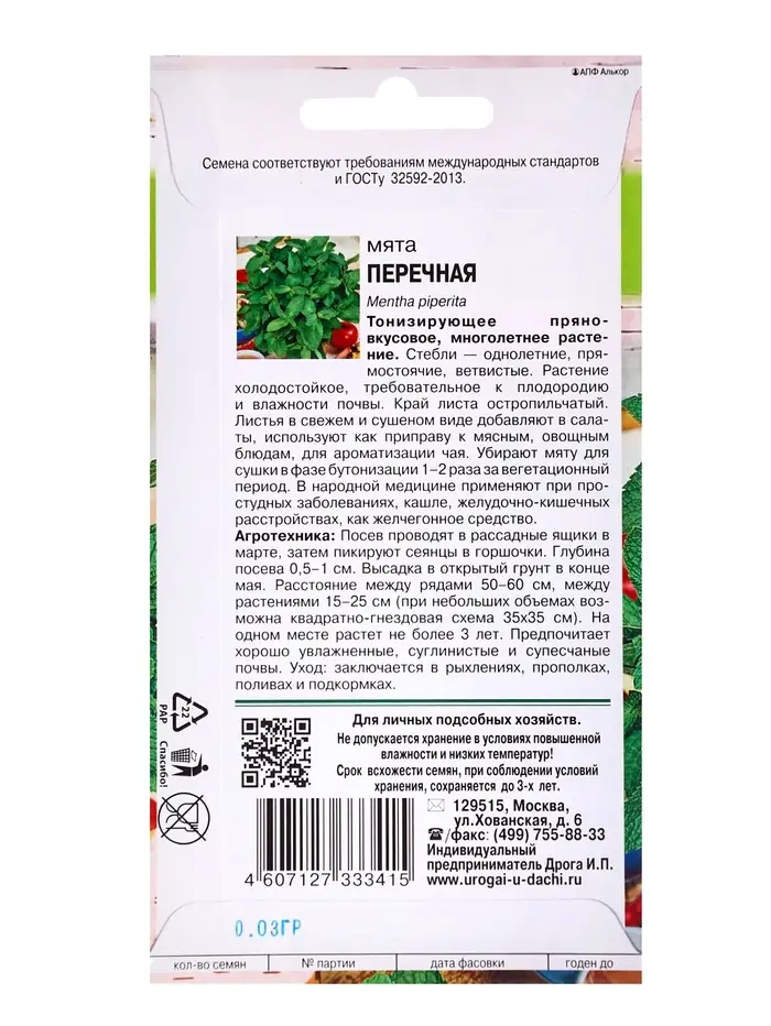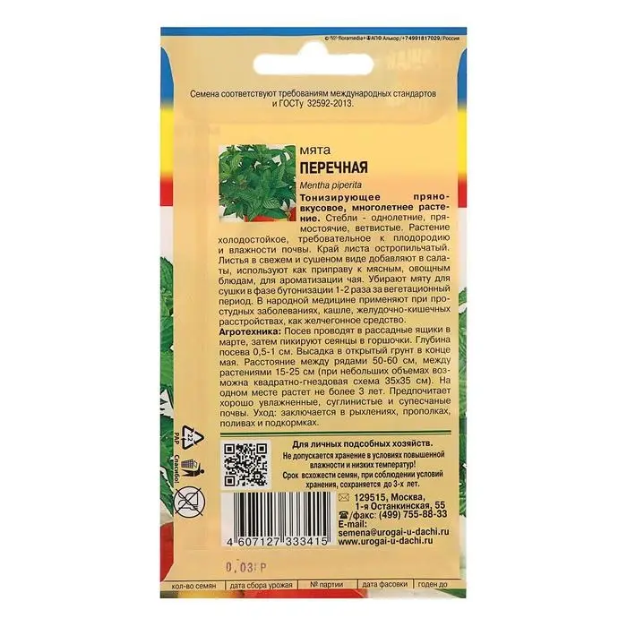 Семена Мята Перечная,0,03 гр