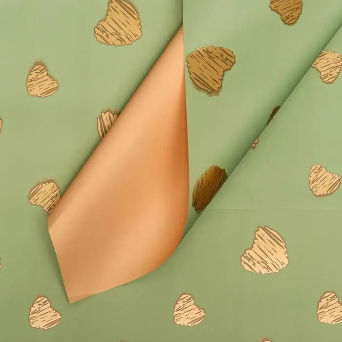Пленка матовая «Золотые сердца», лаймовый, 58×58 см