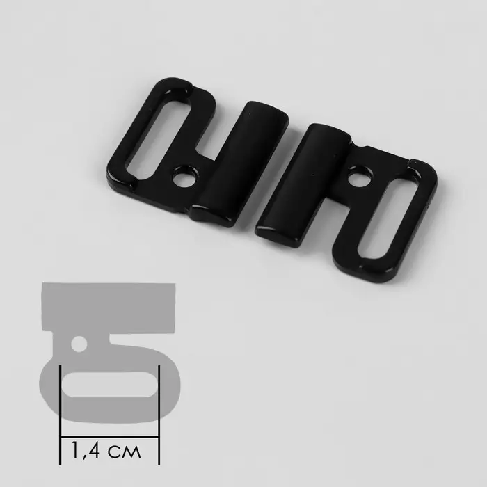 Изготовленные из лёгкого, но износостойкого пластика, застёжки обеспечивают плотное соединение без риска деформации. Их гладкая поверхность и продуманная форма делают процесс застёгивания быстрым и удобным, а нейтральный чёрный цвет гармонично впишется в дизайн любого бюстгальтера. Размер 14 мм подходит для большинства стандартных моделей, гарантируя аккуратный вид и надёжную фиксацию.