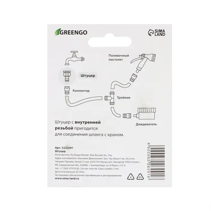 Greengo — ваш надежный помощник в создании удобных и эффективных водных систем. Этот штуцер удивит вас своей простотой и функциональностью. Больше не нужно искать сложных решений — выбирайте доступный, удобный и стильный вариант. С Greengo вы сэкономите время, деньги и нервы. Создавайте комфорт и наслаждайтесь качеством!