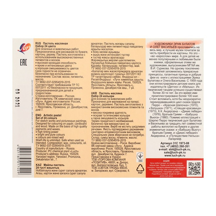 Пастель масляная 24 цвета, "Луч" Школа творчества, трёхгранная
