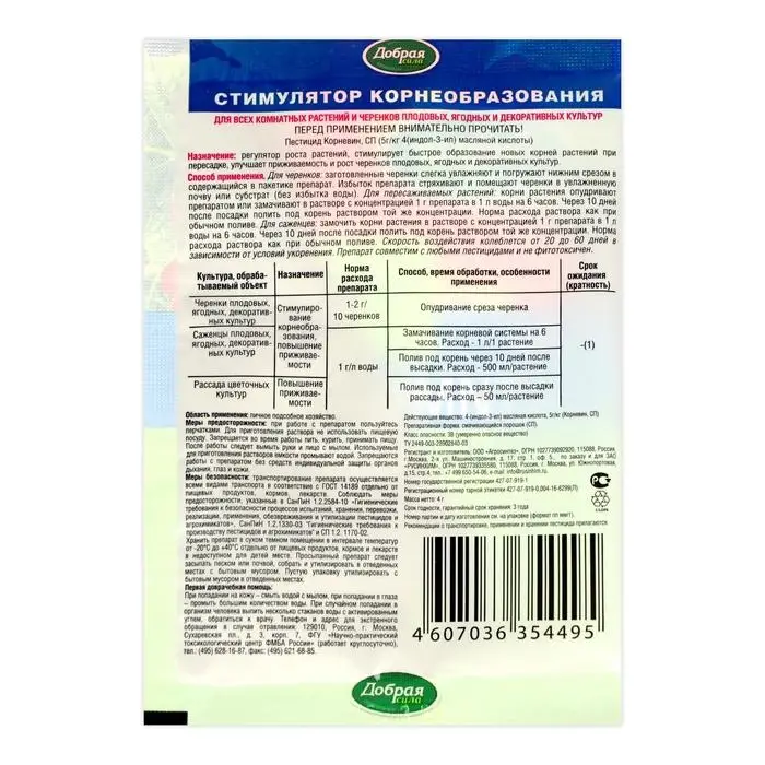 Средство для стимулирования корнеобразования всех комнатных растений и черенков плодовых, ягодных и декоративных культур.