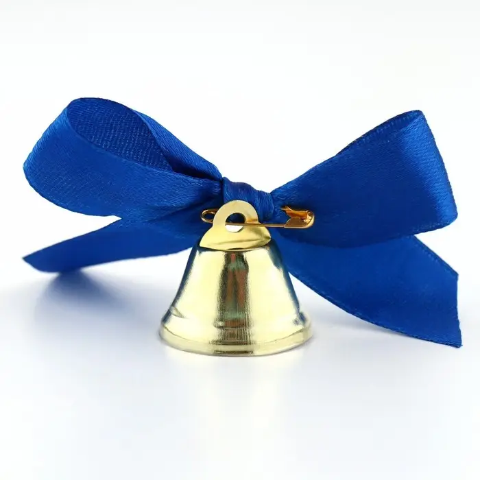 Колокольчик на булавке с бантом на выпускной, синий, d = 2,6 см