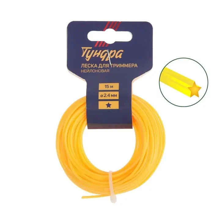 Леска для триммера ТУНДРА, сечение звезда, d=2.4 мм, 15 м, нейлон