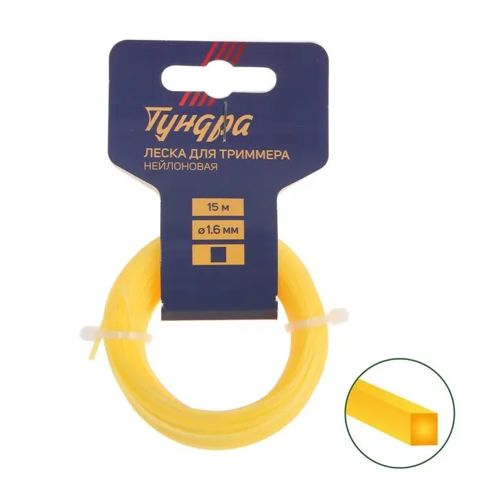 Леска для триммера ТУНДРА, сечение квадрат, d=1.6 мм, 15 м, нейлон