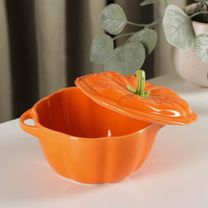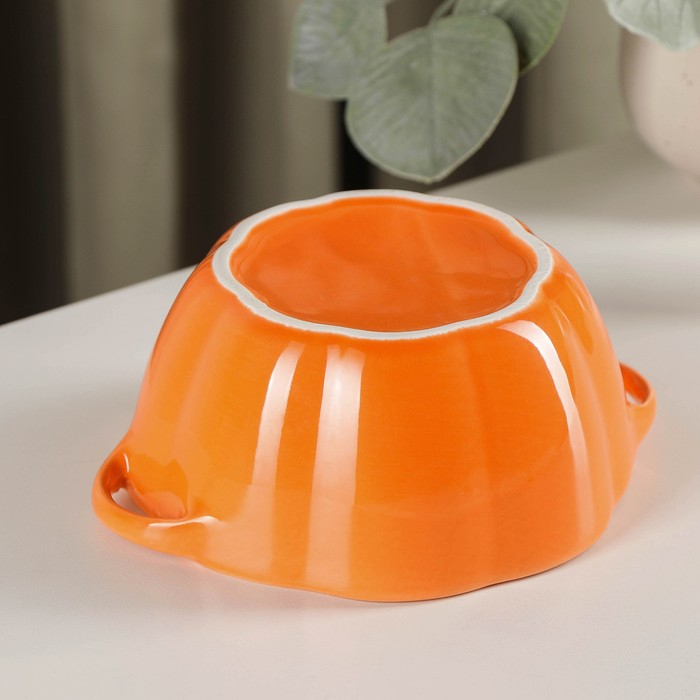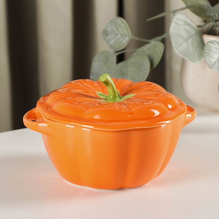 Горшочек из жаропрочной керамики для запекания «Тыква», 400 мл, 16×13×8,5 см, посуда для Хэллоуина, цвет оранжевый
