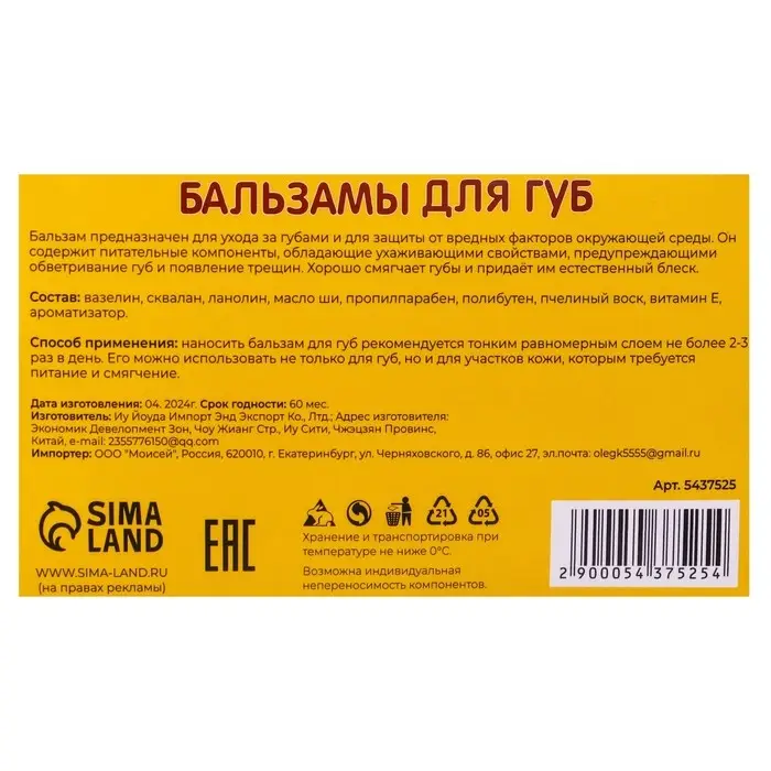 Бальзам предназначен для ухода за губами и для защиты от вредных факторов окружающей среды. Он содержит питательные компоненты, обладающие ухаживающими свойствами, предупреждающими обветривание губ и появление трещин. Хорошо смягчает губы и придаёт им естественный блеск.