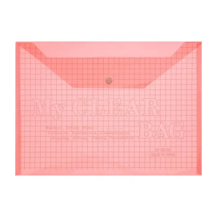 Папка конверт на кнопке А4, 180 мкм, Calligrata, полупрозрачная, с вертикальным расширением, микс