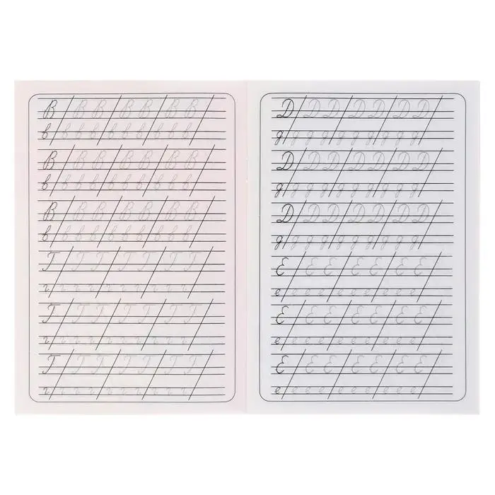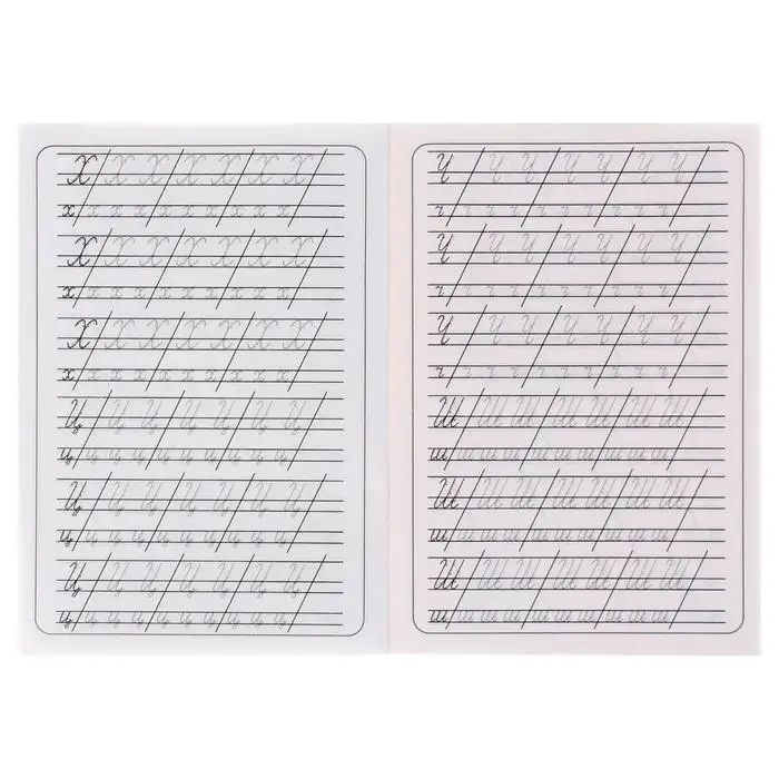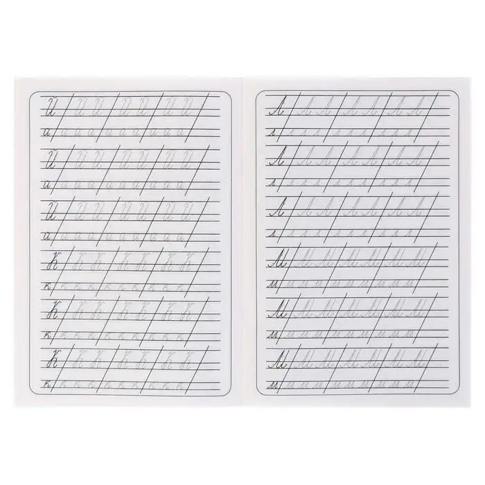 - Страницы с косой линейкой помогают ребёнку ориентироваться при написании букв и слов.
