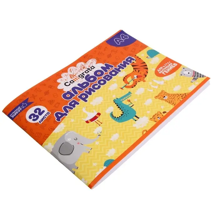 Альбом для рисования А4, 32 листа на скрепке Calligrata, обложка мелованный картон, внутренний блок офсет 100 г/м²